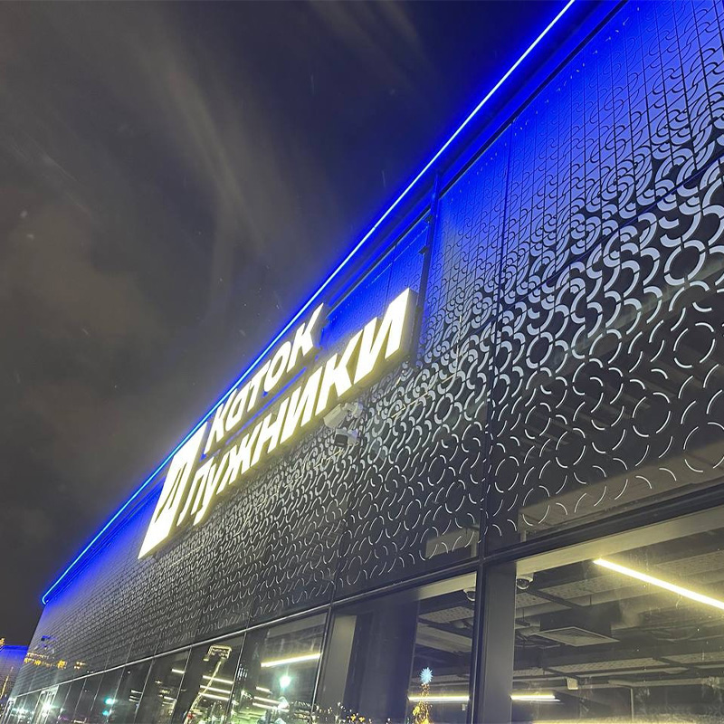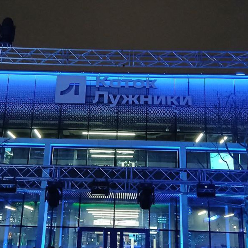 В Лужниках открылся обновлённый каток — завершён первый этап реконструкции одного из самых известных городских пространств. Команда «Мира Рекламы» приняла участие в этом проекте, отвечая за изготовление и установку световых элементов.